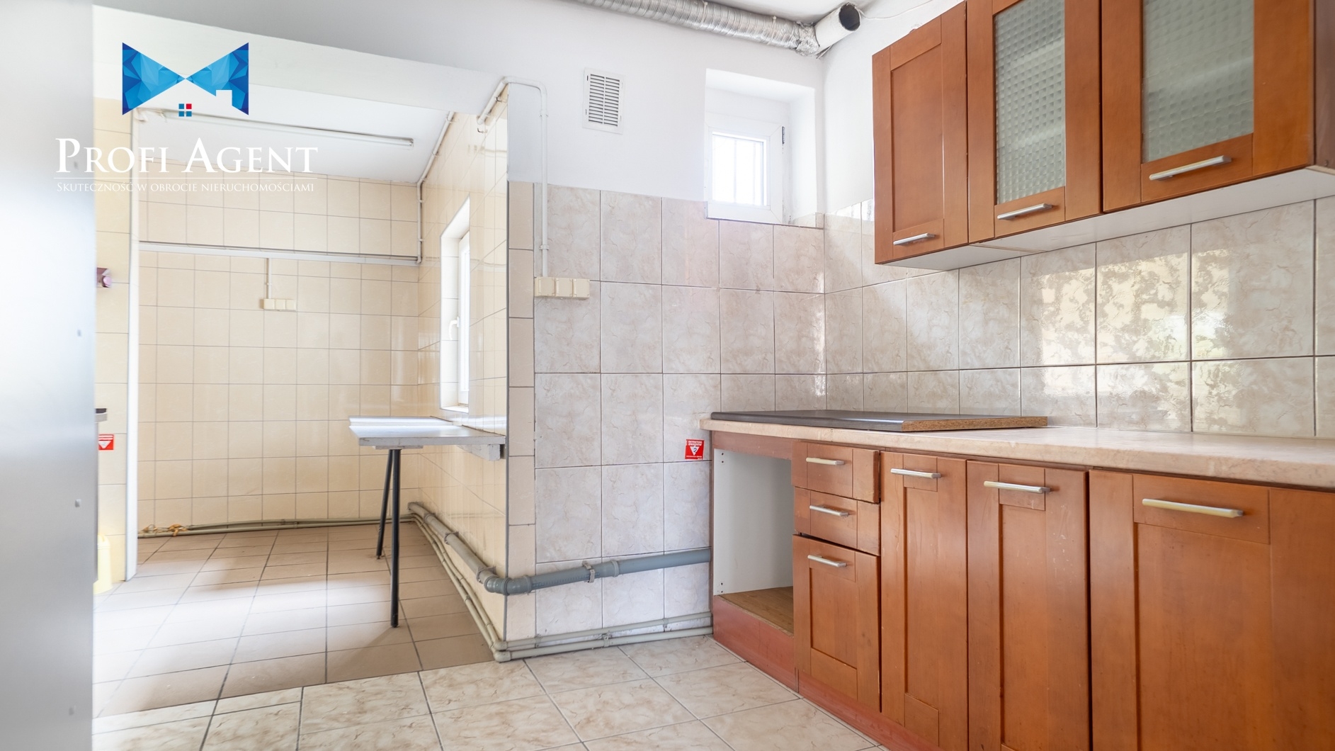Do wynajęcia przestronny lokal użytkowy o powierzchni 140 m², wcześniej wykorzystywany pod działalność gastronomiczną. Składa się z dwóch sal, baru, kuchni oraz zaplecza socjalnego, co daje szerokie możliwości adaptacji. Wnętrze zostało odświeżone – ściany są wygładzone i pomalowane, a na podłogach znajdują się praktyczne kafle.